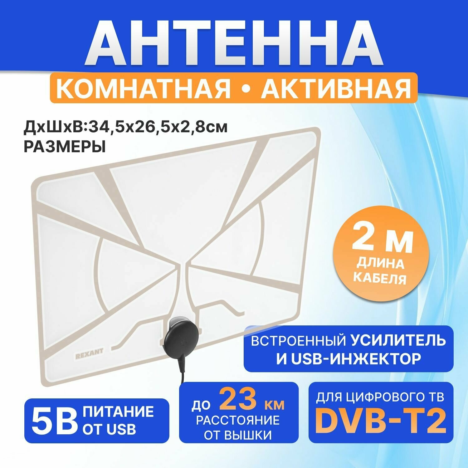 Антенна Rexant 34-0711 комнатная, с USB питанием, для цифрового телевидения DVB-T2, Ag-711