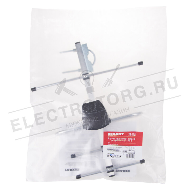 Антенна ТВ наружная "активная" для аналогового и цифрового ТВ - DVB-T2 (модель RX-408) (пакет) Rexant 34-0408