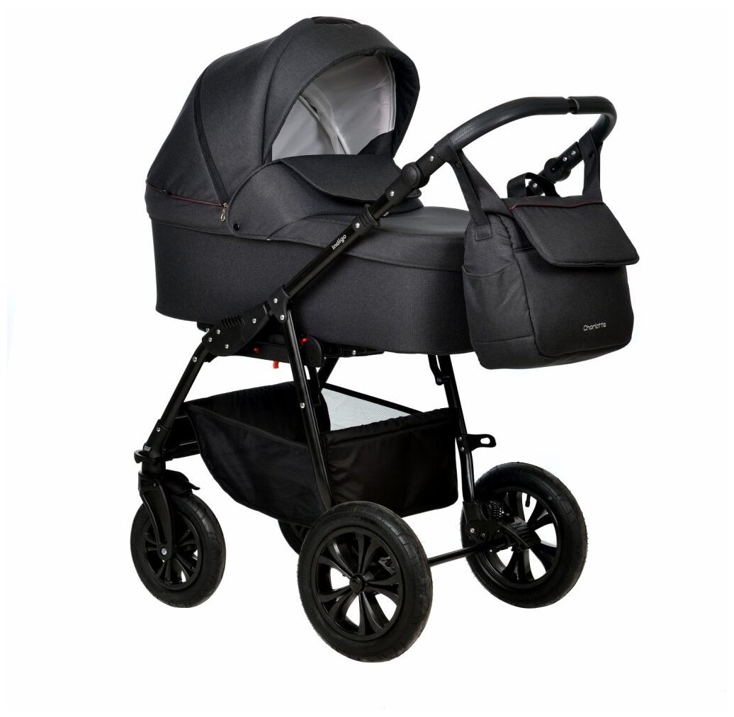 Коляска CHARLOTTE Mono 2в1 (Indigo) (Cm 05 (черный+серебряная кожа))