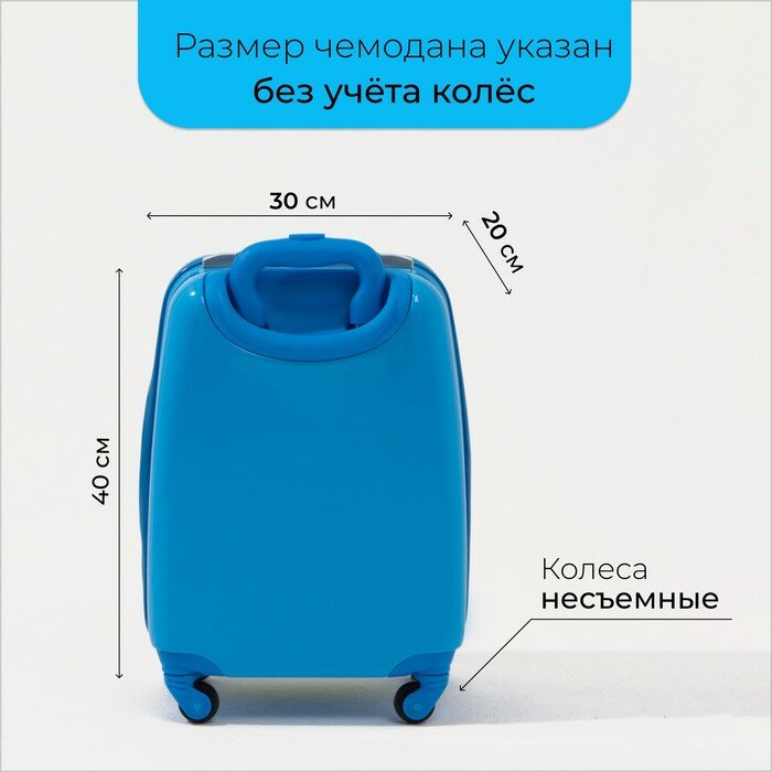 Чемодан детский 16", отдел на молнии, 2 колеса, цвет голубой
