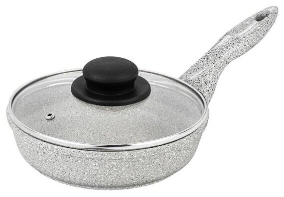 Сковорода глубокая 18 см Elan Gallery гармония вкуса Серый мрамор с крышкой D18, несъёмная ручка