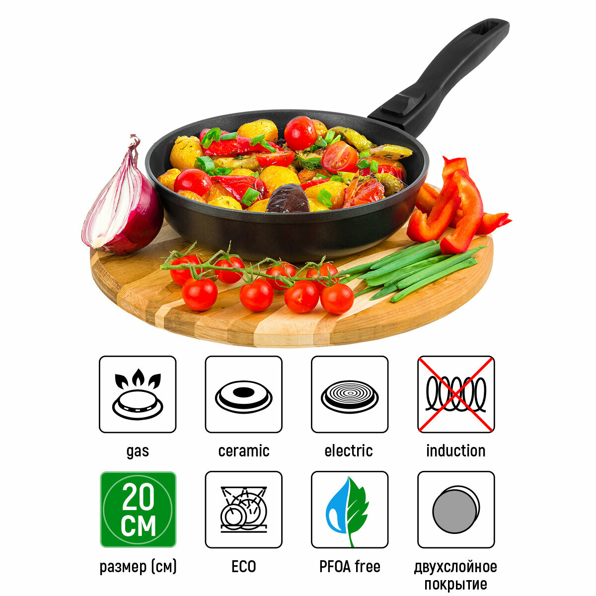 Сковорода глубокая 20 см Elan Gallery гармония вкуса Черный Оникс, съёмная ручка интересное: