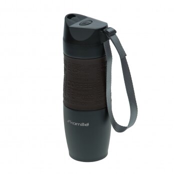 Термокружка 480 мл. из нержавеющей стали Kamille KM-2067 с TPR-вставкой и ремешком (2067 / коричневый)