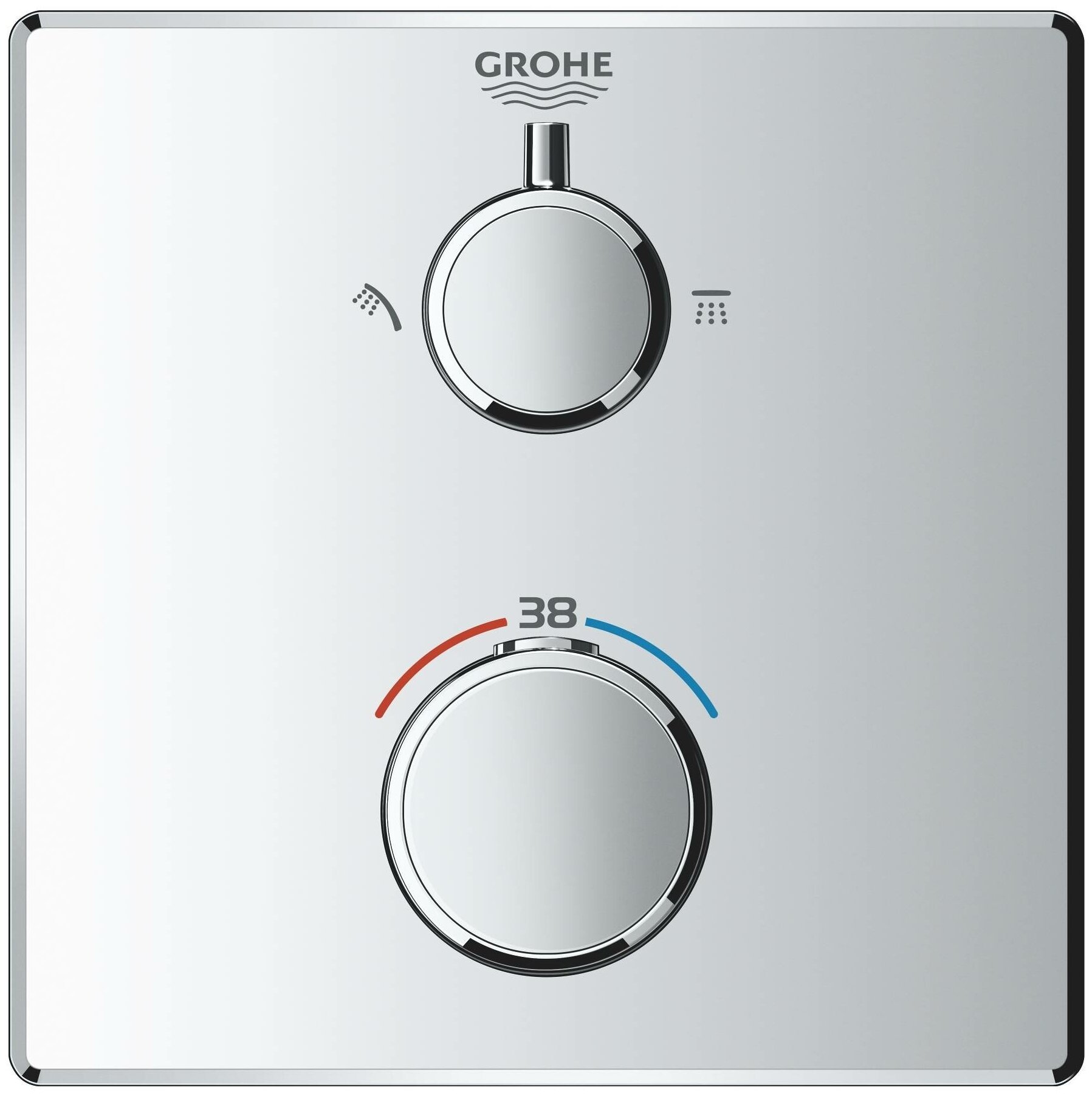 Смеситель Grohe термостатический Grohtherm 24079000 для душа с переключателем на 2 пол.вер./ручн.душ, квадратная