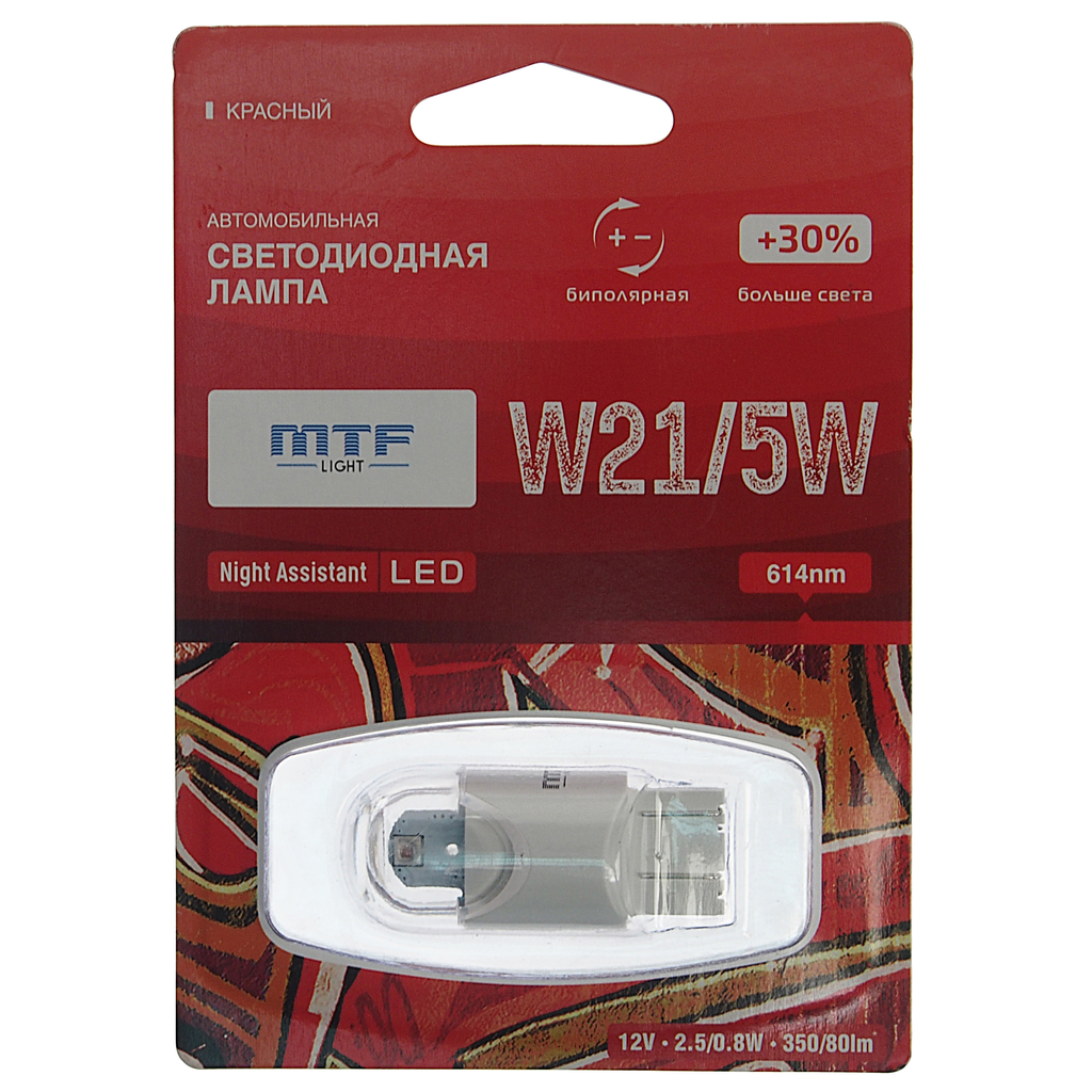 Светодиодная автолампа MTF Light серия Night Assistant 12В, 2.5Вт, W21/5W, красный, блистер, 1 шт.