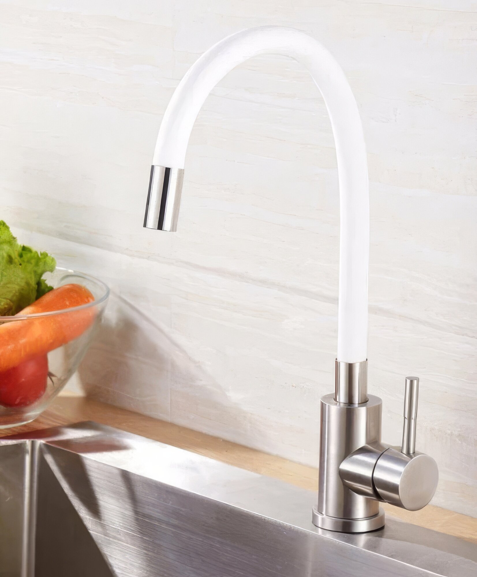 СохранитьСмеситель для кухни с гибким силиконовым изливом, кран для кухни Solone EZA4-F090KW, белый интересное:
