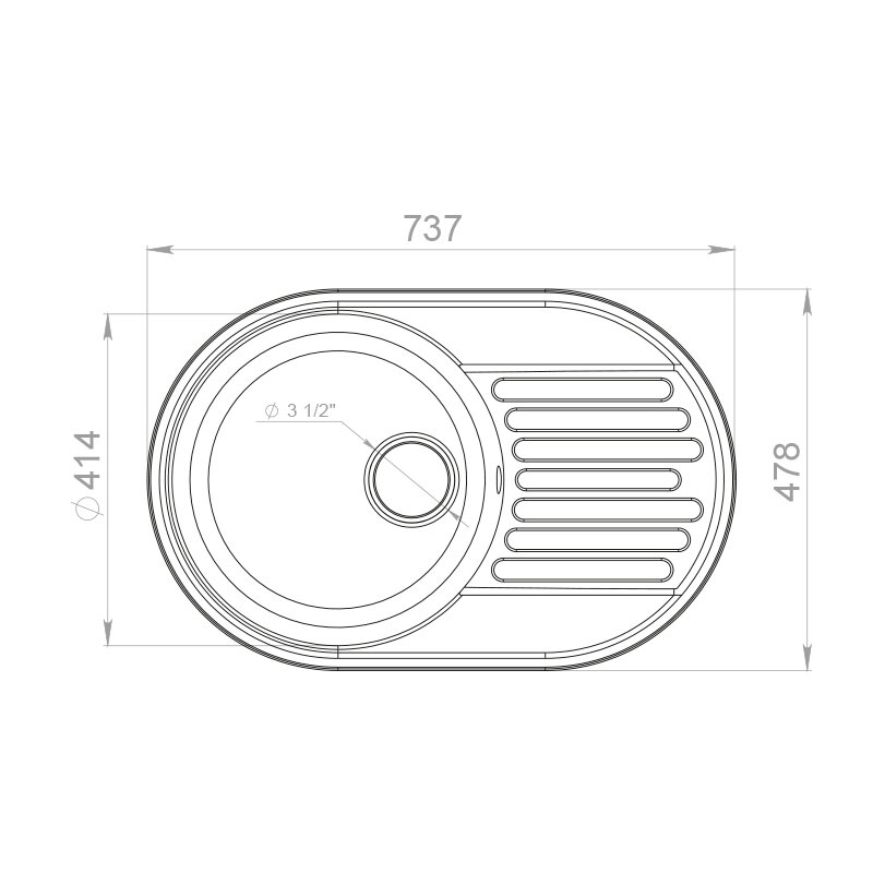 Мойка чаша+кр 740*480 (серый), GRANFEST, GF-Z18