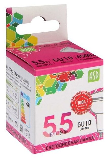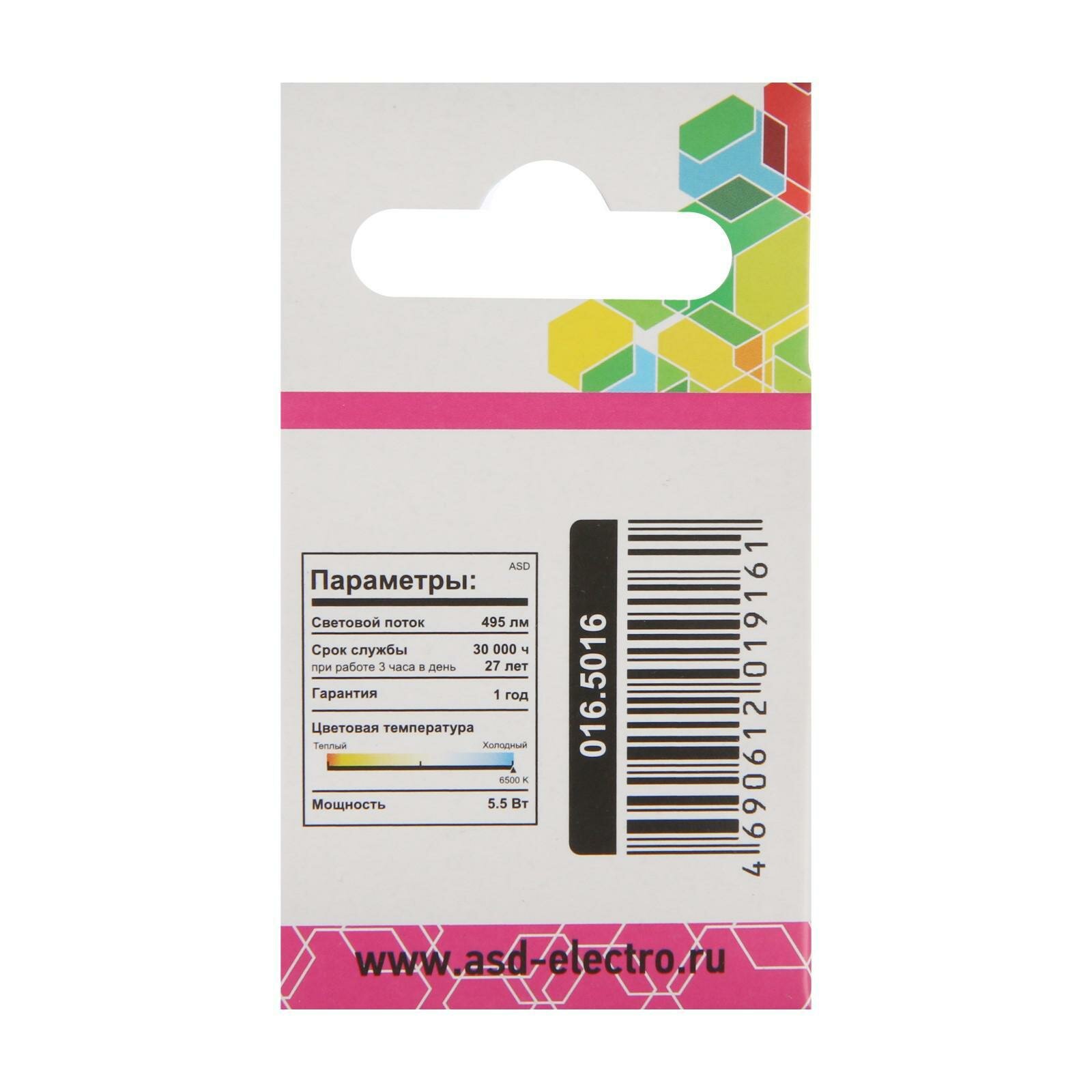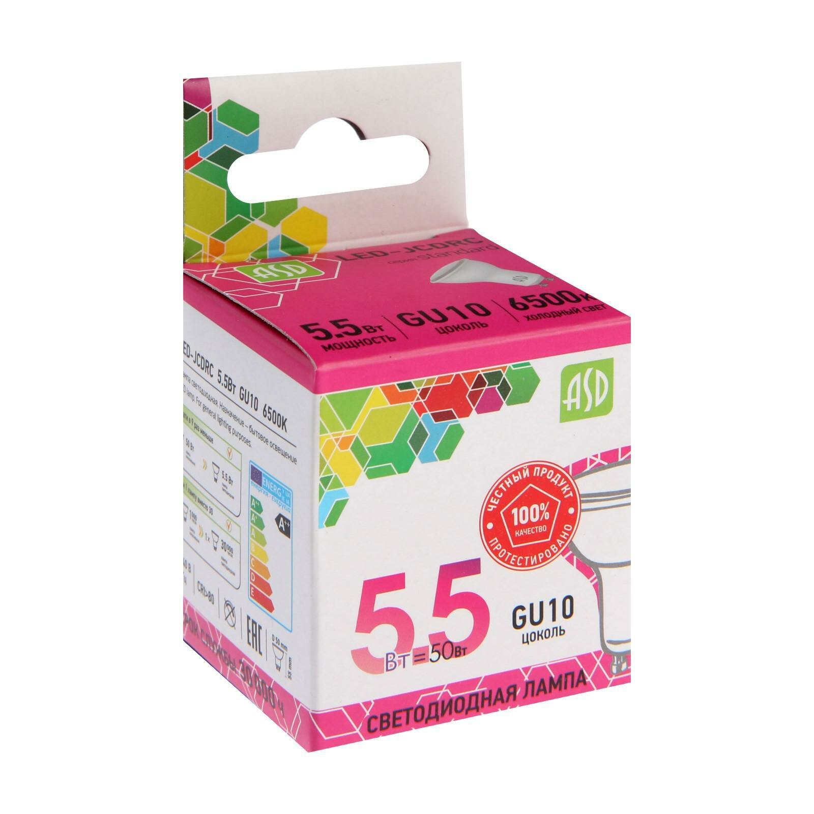 Лампа светодиодная ASD LED-JCDRC-standard, 5.5 Вт, 230 В, GU 10, 6500 К, 470 Лм