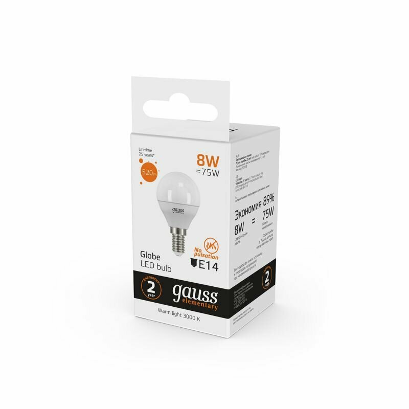 Gauss Elementary Шар G45 E14 12W 920lm 4100K 4K 82х45 матовая, пластик/алюм. 53122 (арт. 677137)