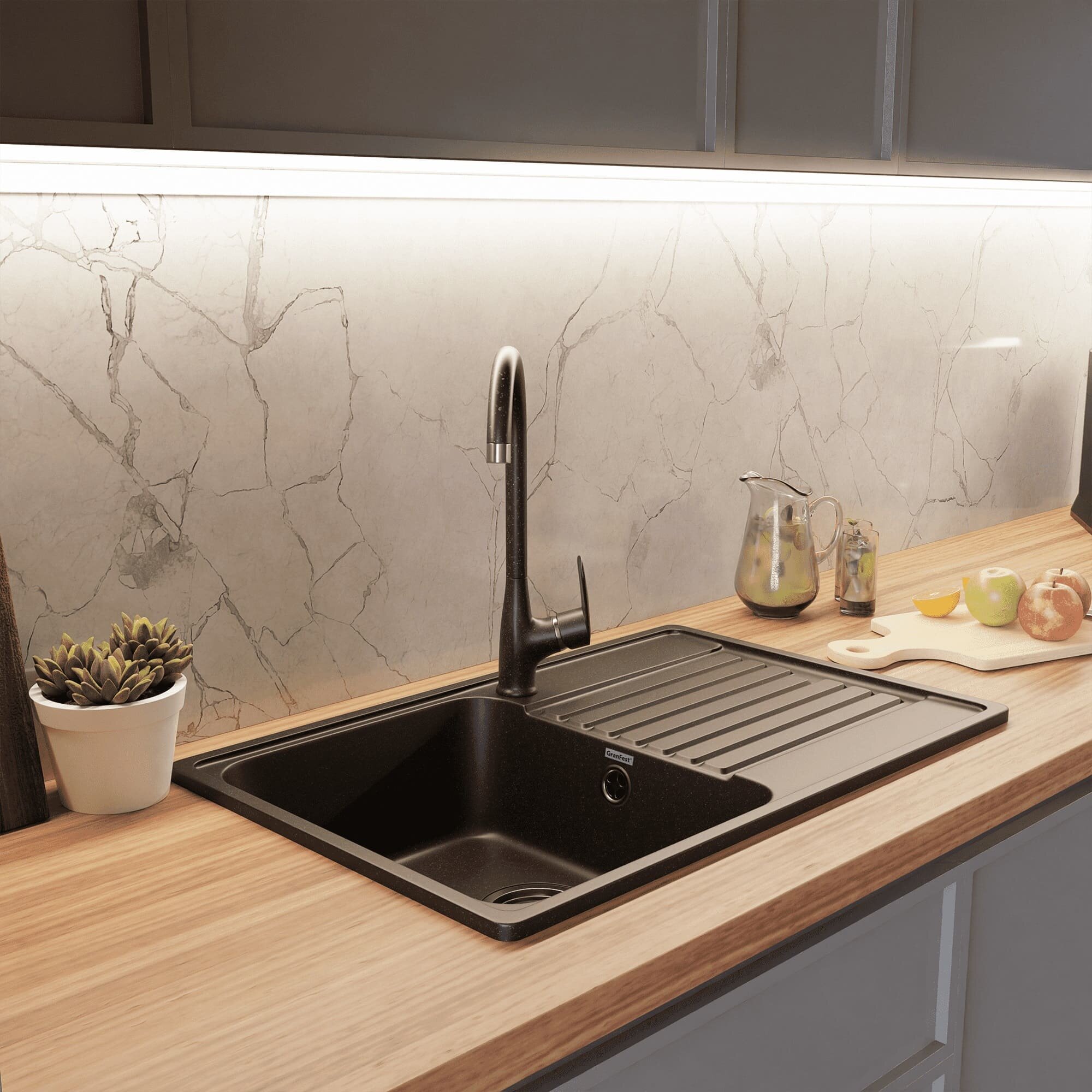 Мойка для кухни врезная каменная GranFest Quarz GF-Z78, цвет черный, с крылом, прямоугольная, 736х476х180 мм