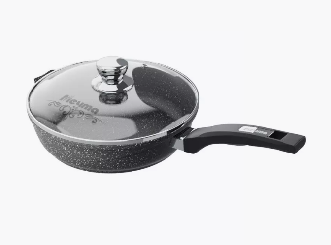 Мечта Сотейник 26 см с несъемной ручкой и cтекляной крышкой АП Гранит black с263802