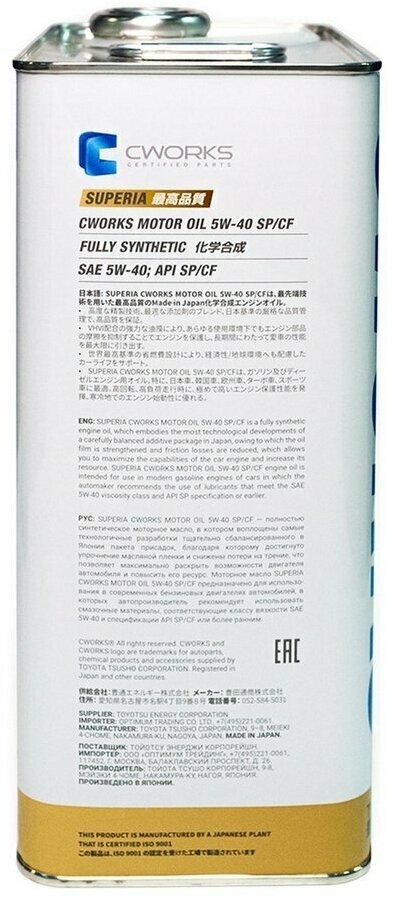 CWORKS A13SR2001 Масо мотор.SUPERIA CWORKS MOTOR OIL 5W-40 SPCF (1) A13SR2001