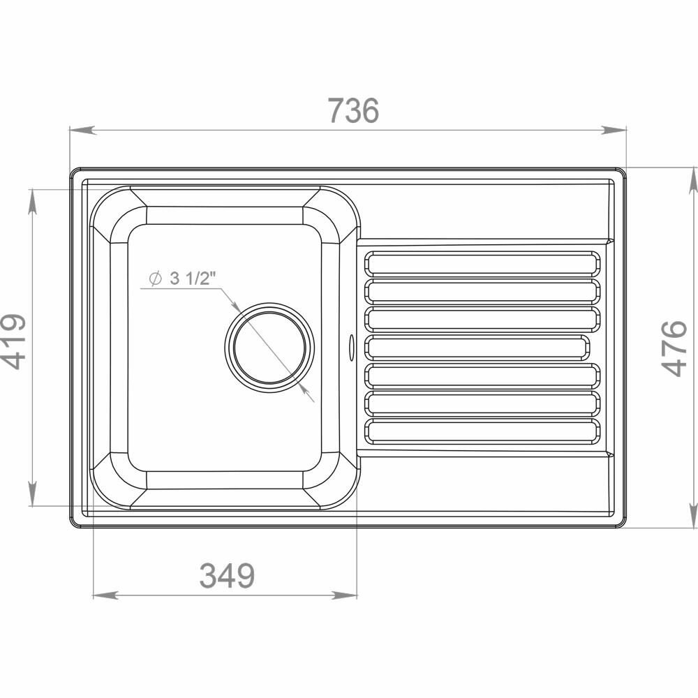 | Диаметр сливного отверстия | 3 1/2 " |