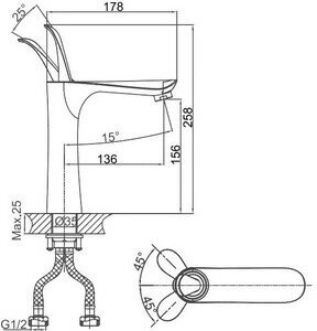 | Комплектация | смеситель - 1 шт., гибкая подводка - 2 шт., крепежная гайка - 1 шт., паспорт изделия - 1 шт., брендовая сумка - 1 шт. |