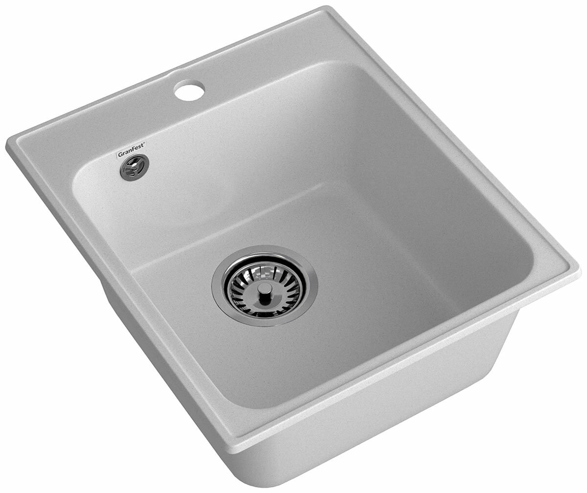 Мойка для кухни врезная каменная GranFest Quarz GF-Z17, цвет белый, квадратная, 418х477х180 мм