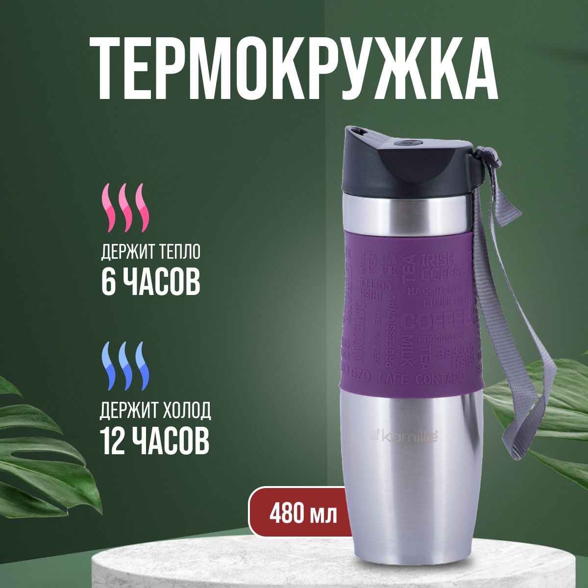 Купить Термокружка 480 мл Kamille KM-2051 из нержавеющей стали (2051 / фиолетовый)