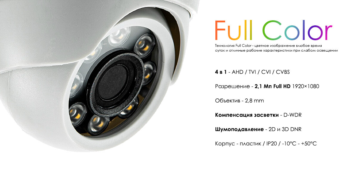 | Тип видеокамеры | купольная |
