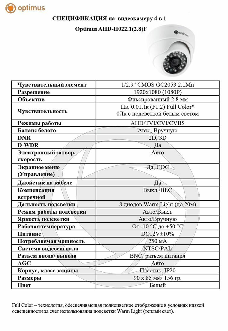 Купольная видеокамера Optimus AHD-H022.1(2.8)F интересное: