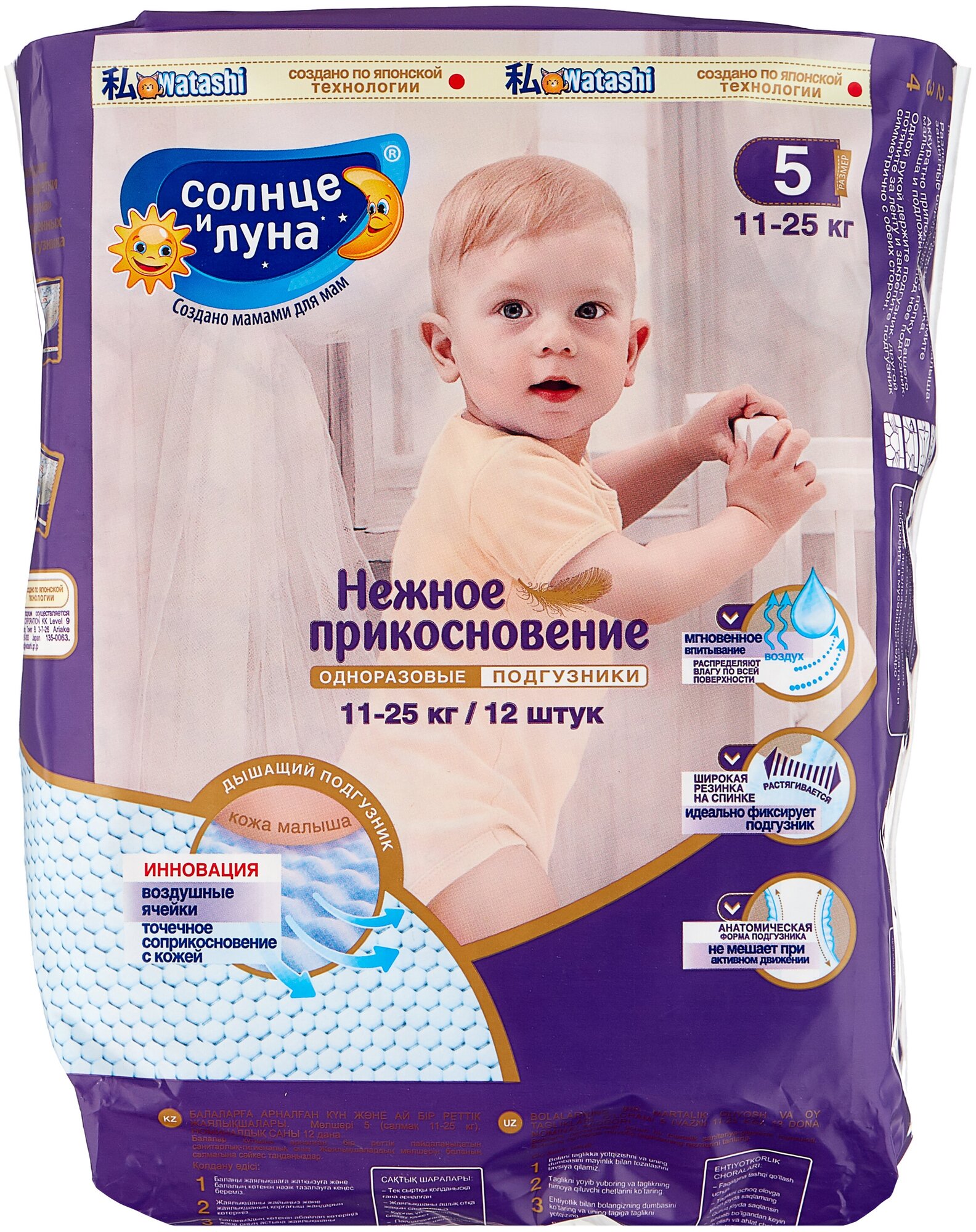 Купить Солнце и Луна подгузники Нежное прикосновение 5 (11-25 кг) 12 шт.