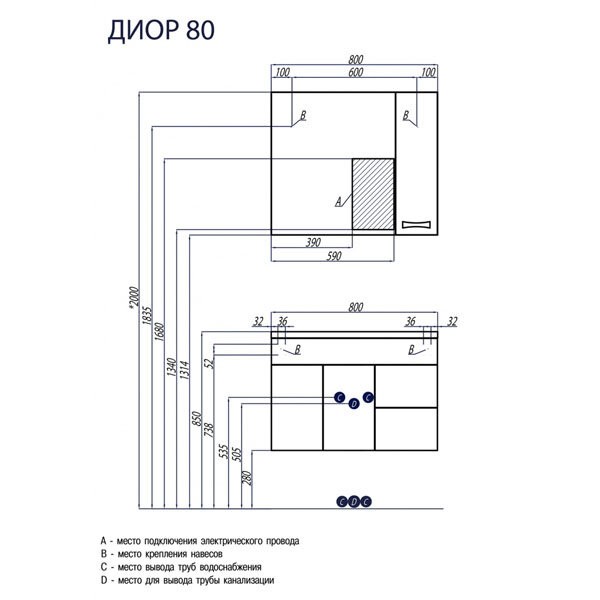 Тумба под раковину AQUATON Диор 80 1A167801DR010 800x540x444 подвесная, 2 ящ., 2 дв., белый глянец