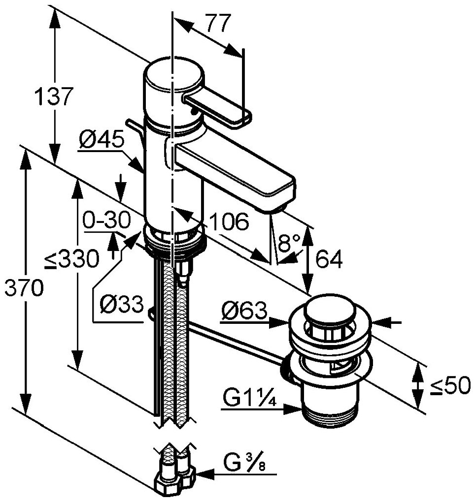 | Высота излива | 64 мм |