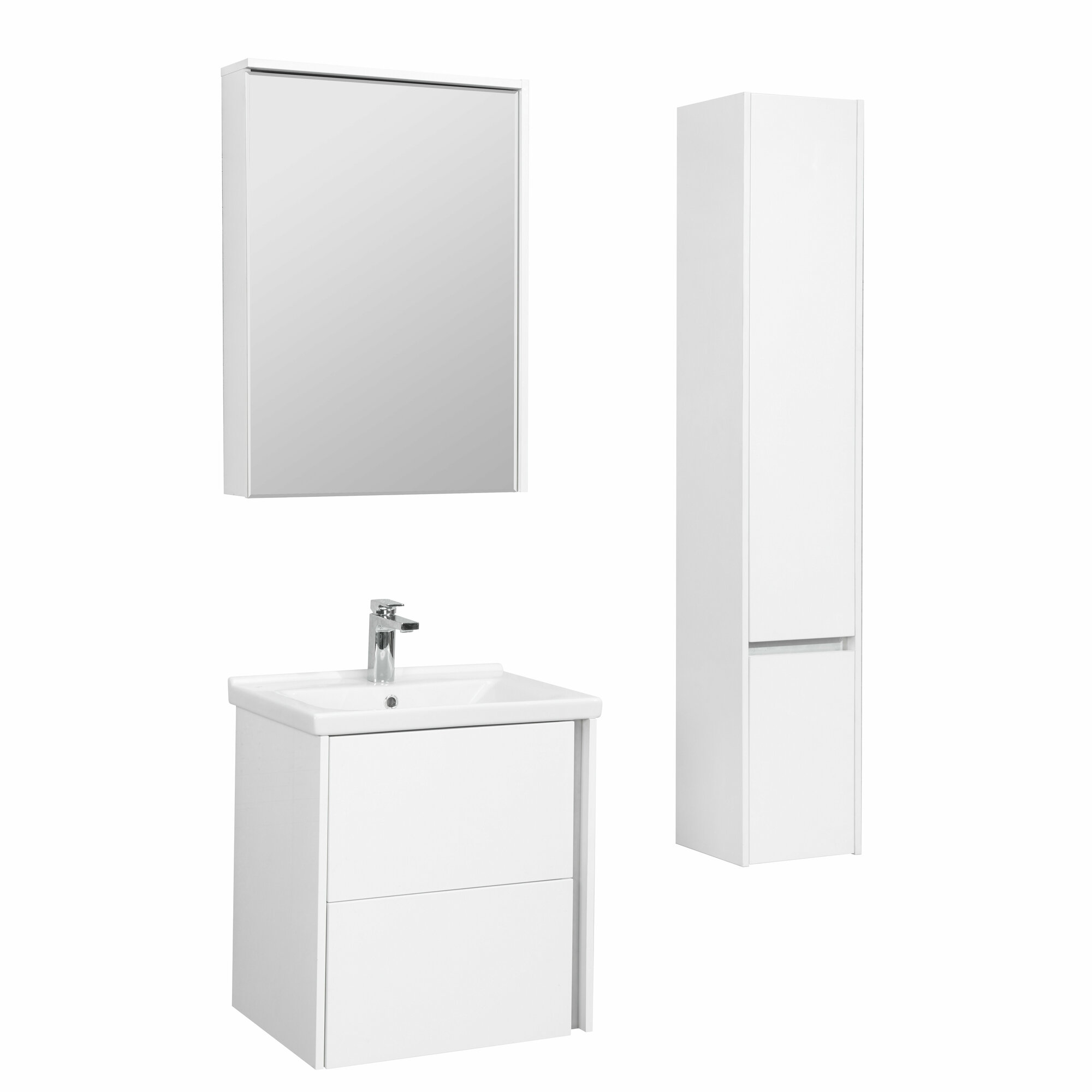 Тумба с раковиной для ванной подвесная AQUATON 1A2580K2AJ010 Сохо 60 белый глянец, раковина Элина 60