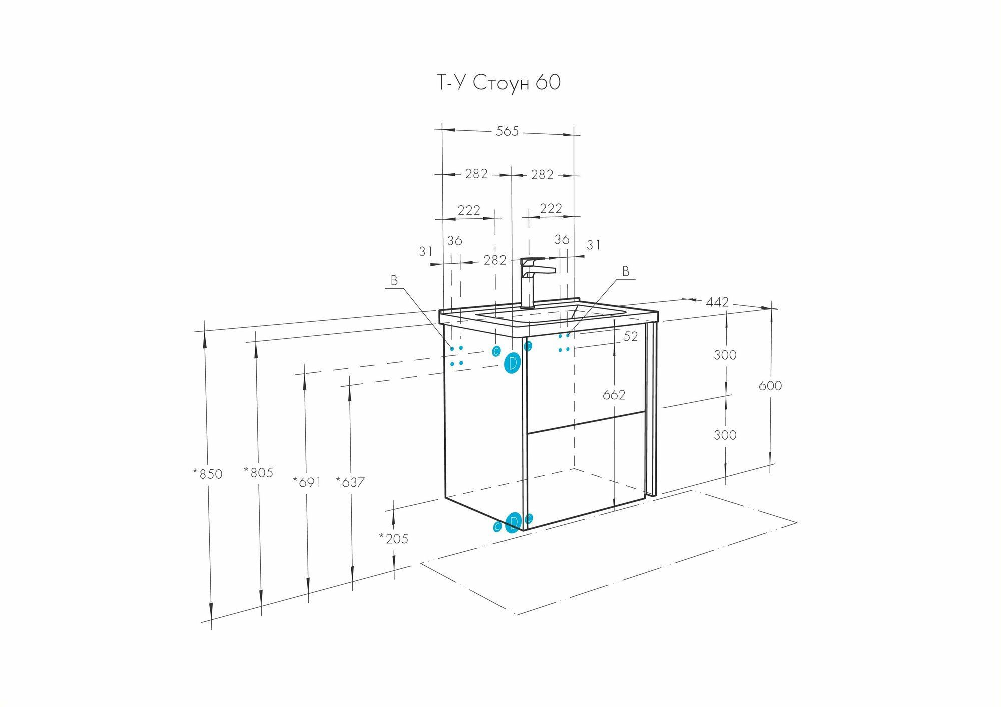 Тумба под раковину Акватон Стоун 60