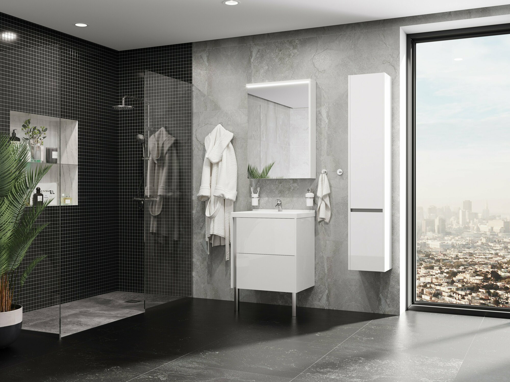 Тумба под раковину AQUATON Марбл 60 слэйт, белый матовый 1A276101MH4C0