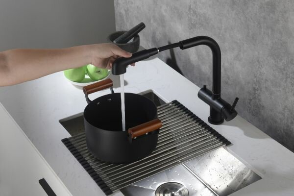 Смеситель для кухни с подключением фильтра и выдвижной лейкой Saona 2346/03FL Черный