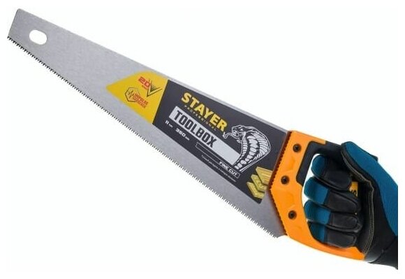 Ножовка многоцелевая (пила) STAYER "Cobra TOOLBOX" 350 мм, 11 TPI, мелкий прямой закаленный зуб, точный рез {2-15091-45_z01}