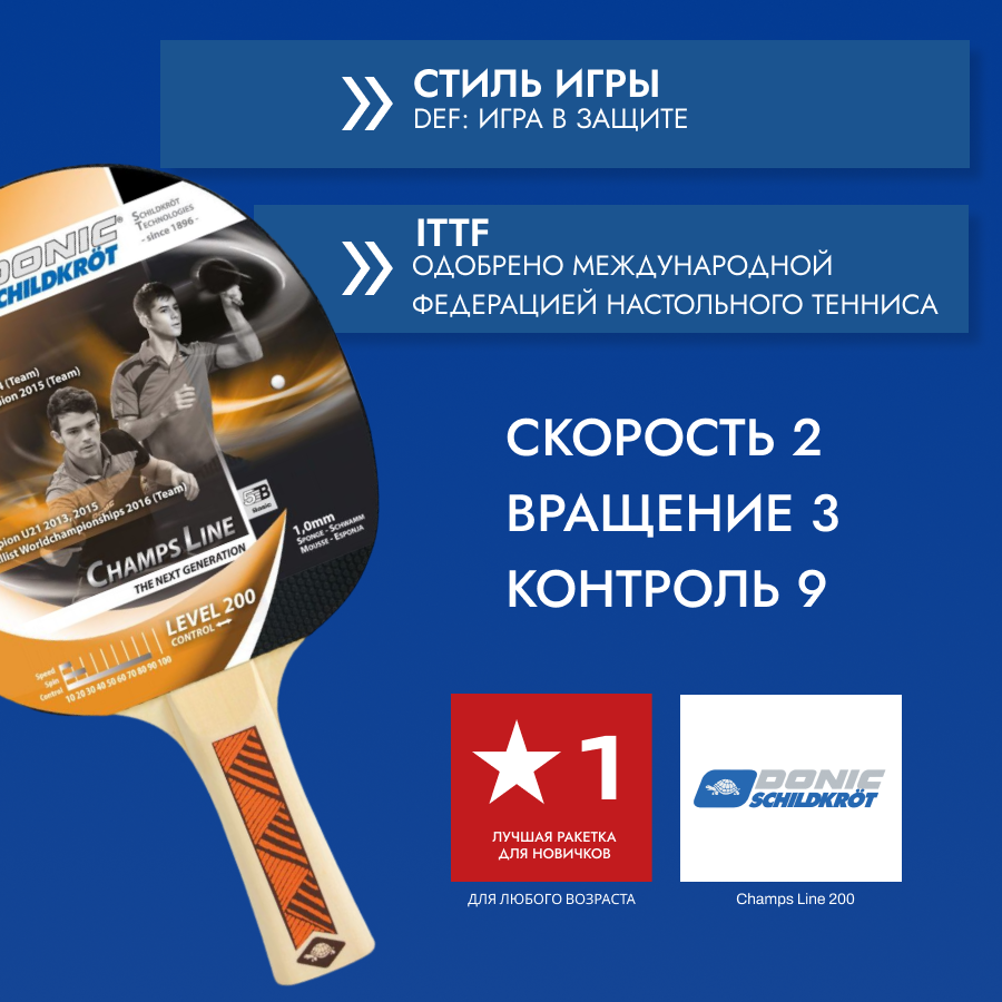 Ракетка для настольного тенниса Donic Schildkrot Champs Line 200 интересное: