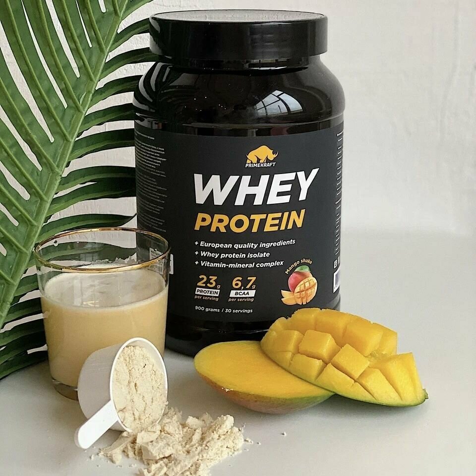 Купить Протеин сывороточный PRIMEKRAFT "Whey Protein" с витаминами и минералами, Манго Шейк, банка 900 г