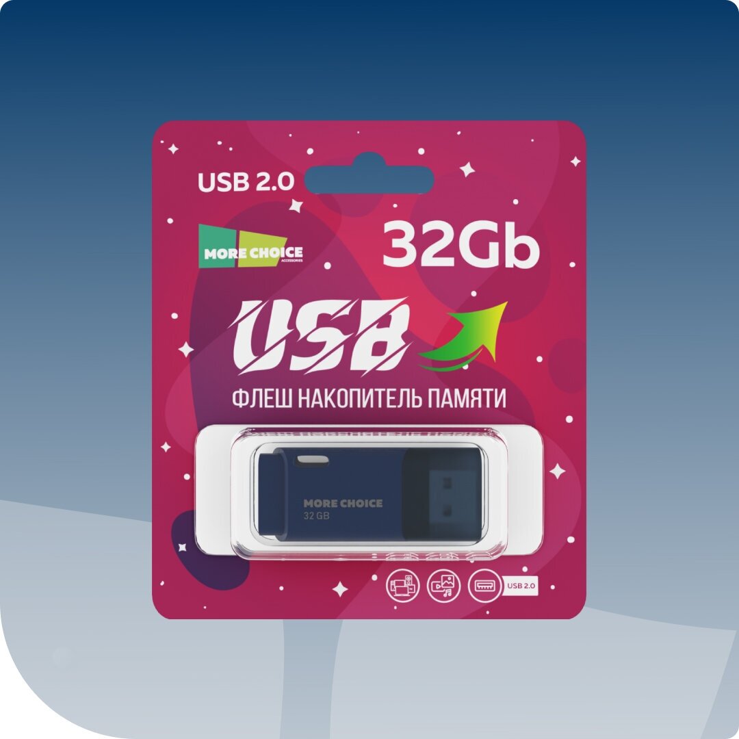 Флеш накопитель памяти, USB More Choice 32GB, 2.0 MF32, темно-синий, 11х10см