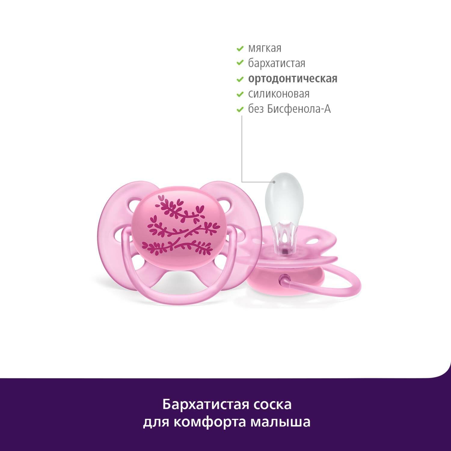Ultra Soft 6-18 мес. 2 шт. SCF223 с футляром для хранения и стерилизации Розовый/Сиреневый