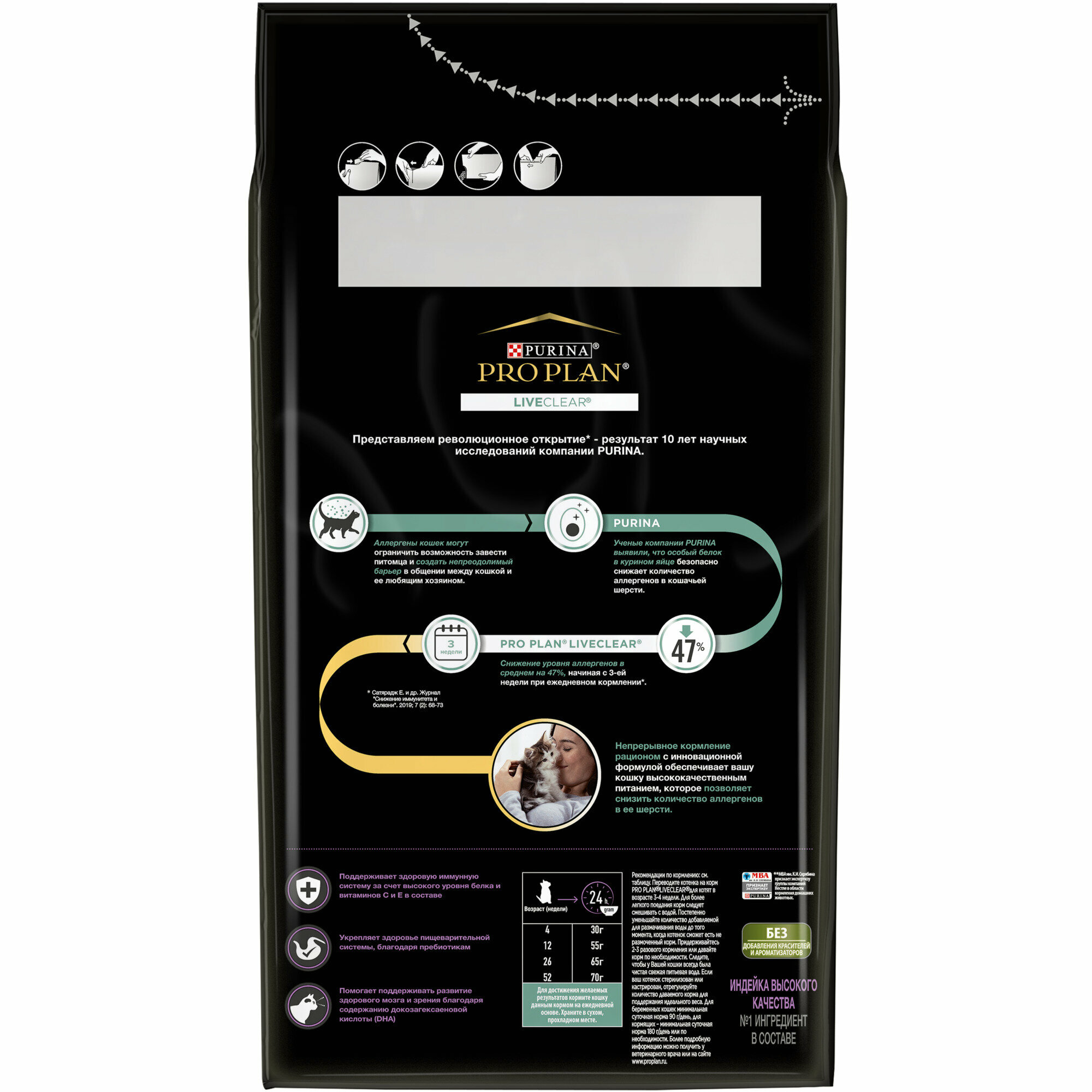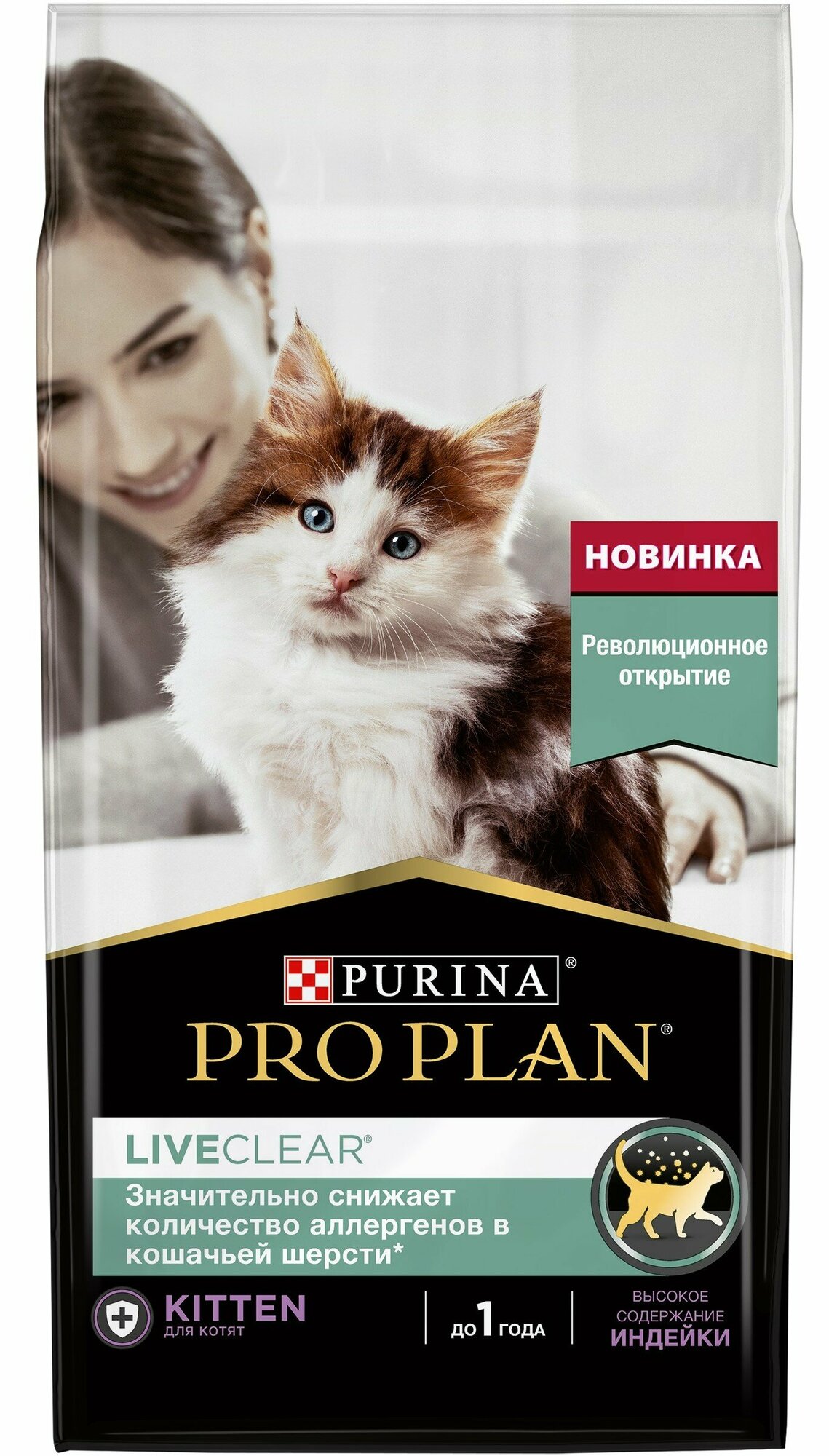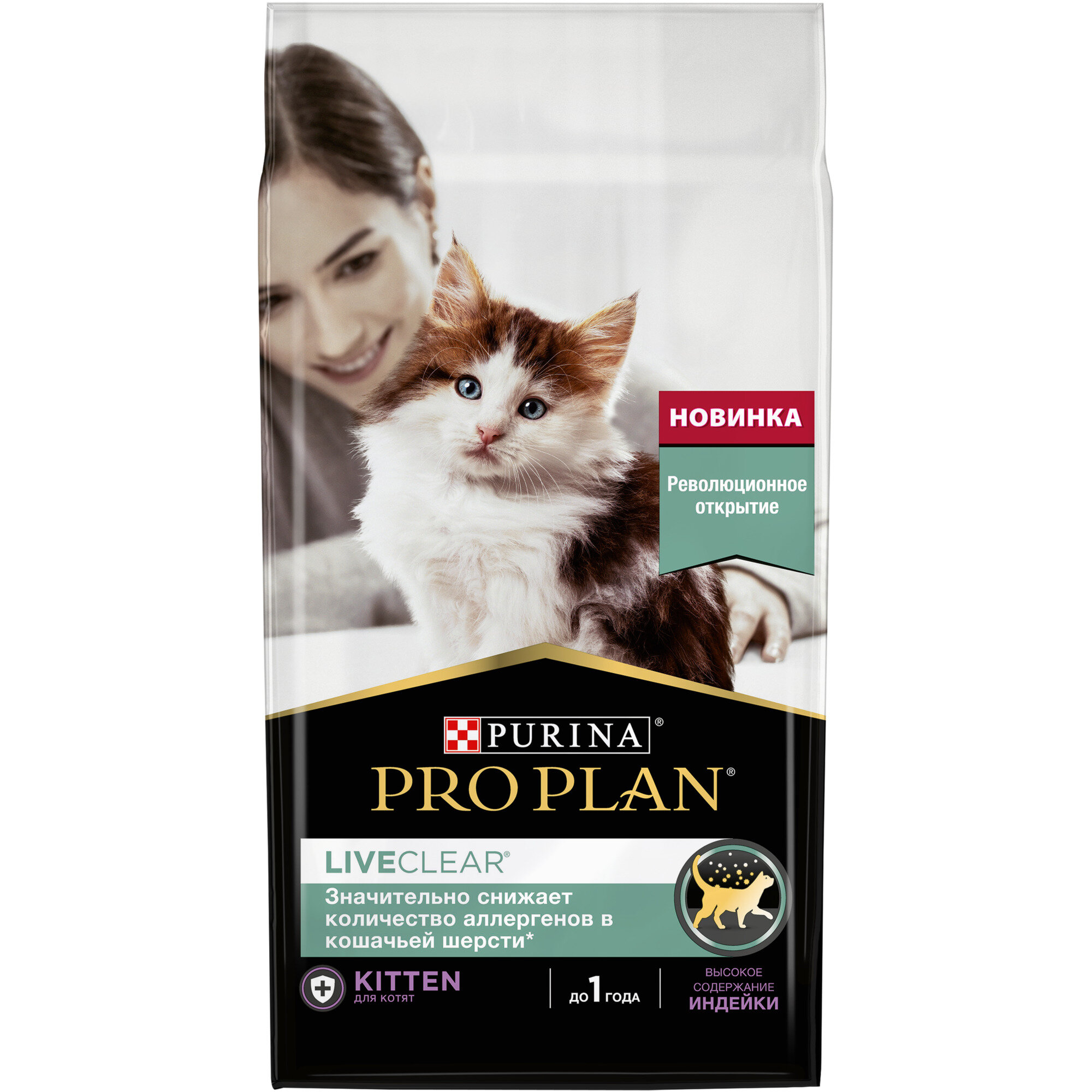 Сухой корм Pro Plan® LiveClear® для котят до 1 года, снижает количество аллергенов в шерсти, с высоким содержанием индейки, Пакет, 0,4 кг