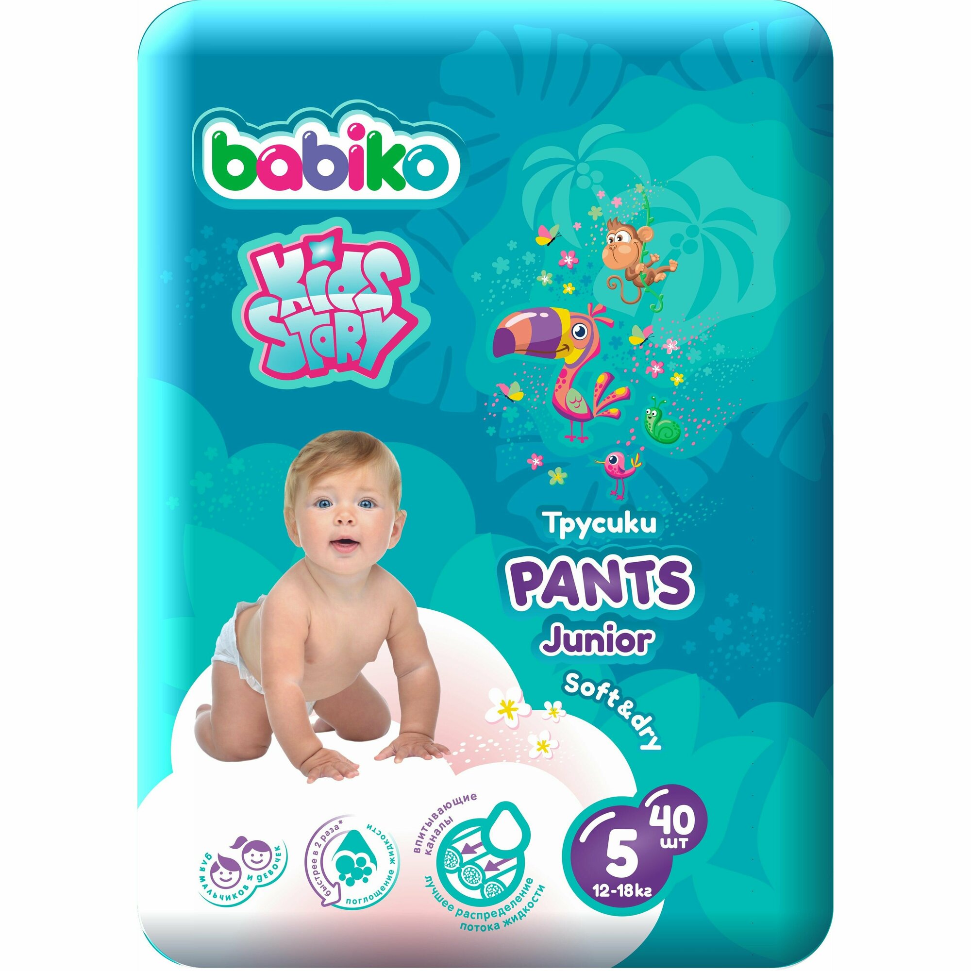 Подгузники-трусики BABIKO 5 12-18 кг JUNIOR, 40 шт интересное: