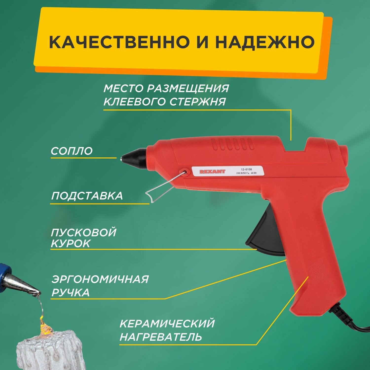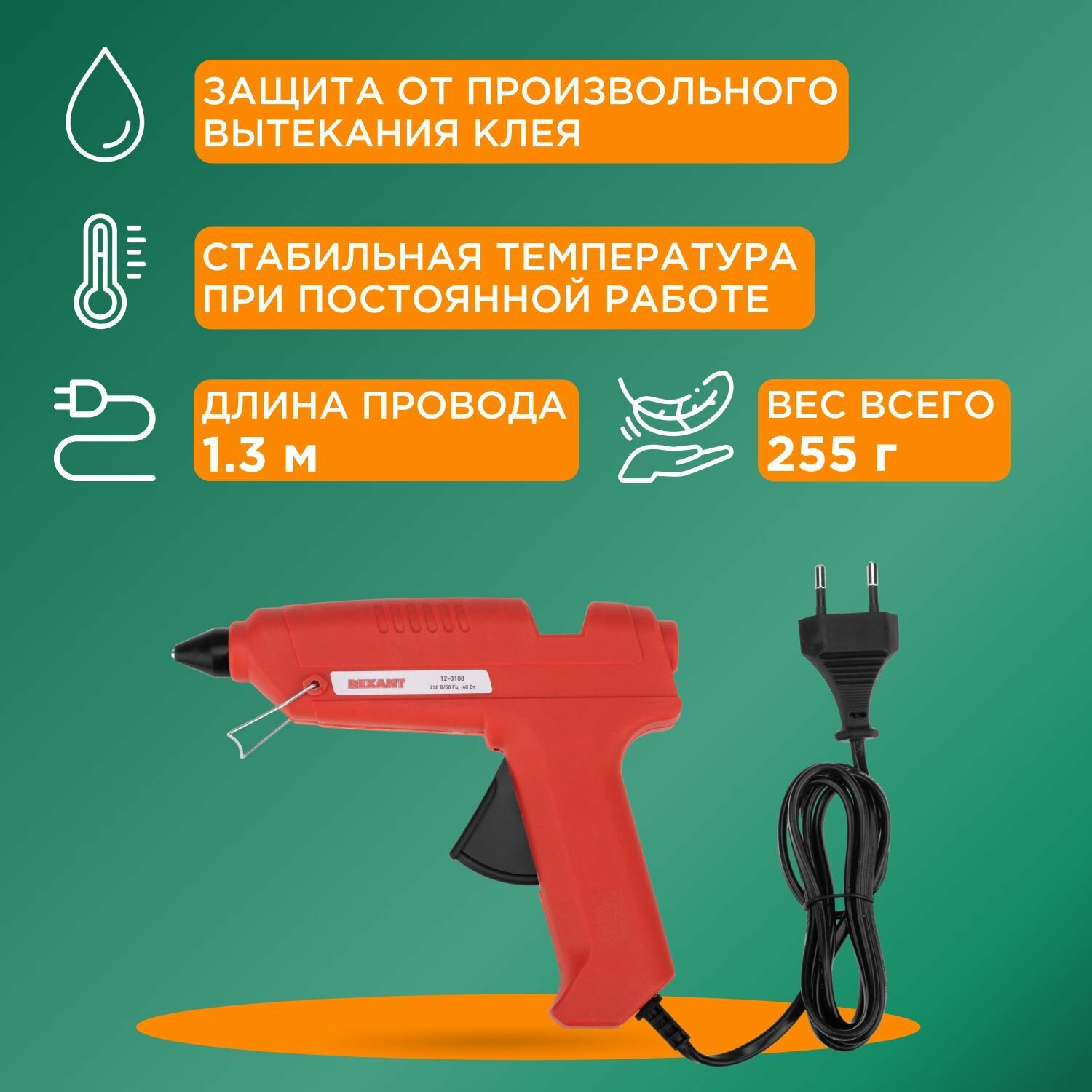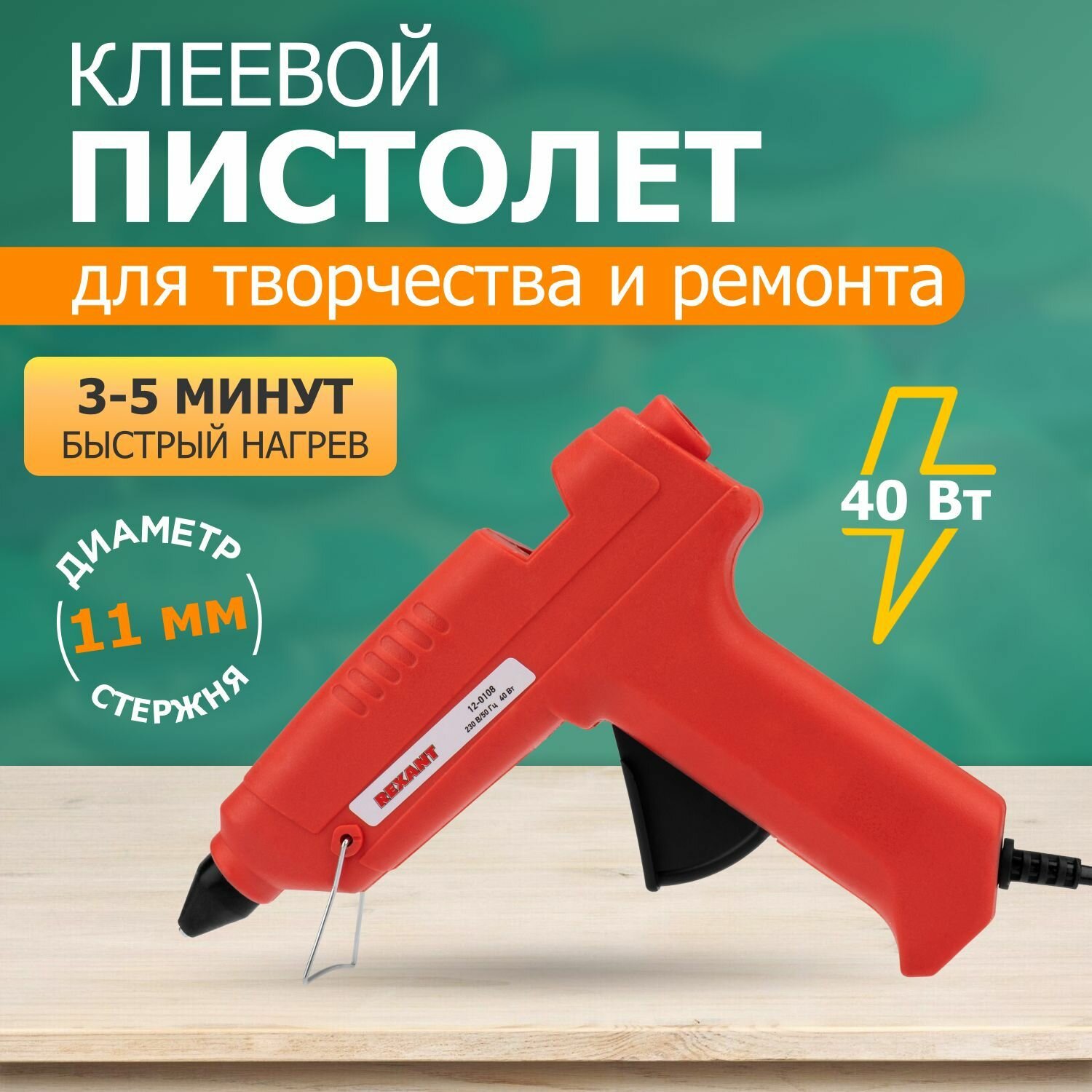 Клеевой пистолет REXANT для стержней диаметром 11 мм с клапаном от протекания, 40 Вт интересное:
