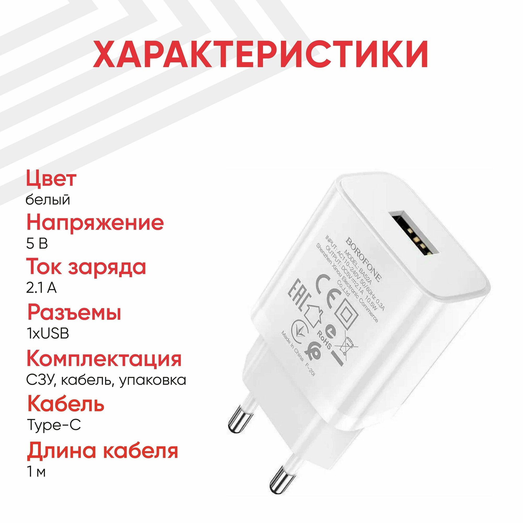 Ниже Вы можете прочитать отзывы на Сетевое зарядное устройство (СЗУ) Borofone BA52A (USB) + кабель Type-C, 2.1 А, белый, ознакомится с подробными характеристиками, посмотреть интересные обзоры и фотографии на Сетевое зарядное устройство (СЗУ) Borofone BA52A (USB) + кабель Type-C, 2.1 А, белый.