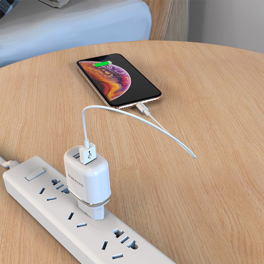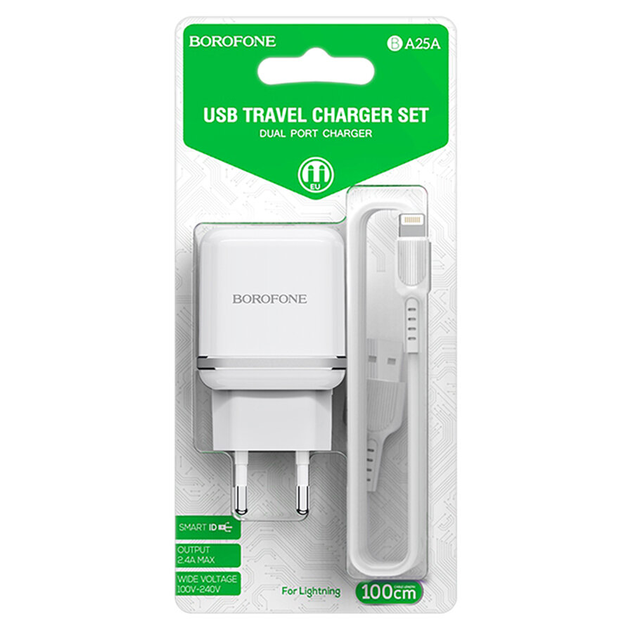 Сетевое зарядное устройство Borofone BA25A USB travel charger set, с кабелем Lightning (ORIGINAL), белый