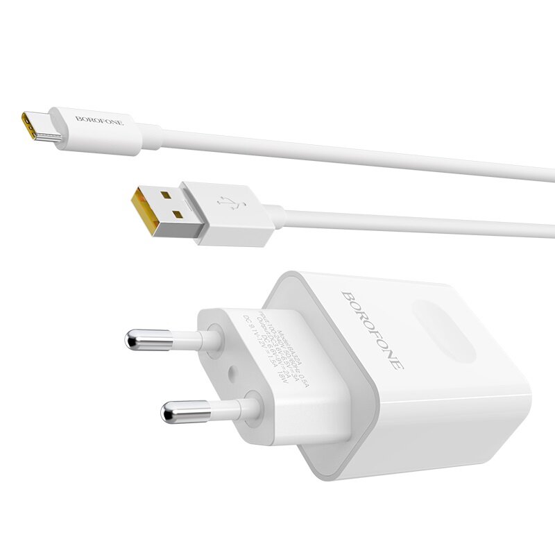 Купить Сетевое зарядное устройство BOROFONE BA32A Bright Power 1xUSB QC3.0, 18W, 3А + кабель Type-C, 1м, белый