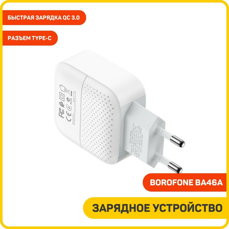 СЗУ BOROFONE BA46A Premium 1xUSB QC3.0 + USB-C PD 18W, 3A (белый)