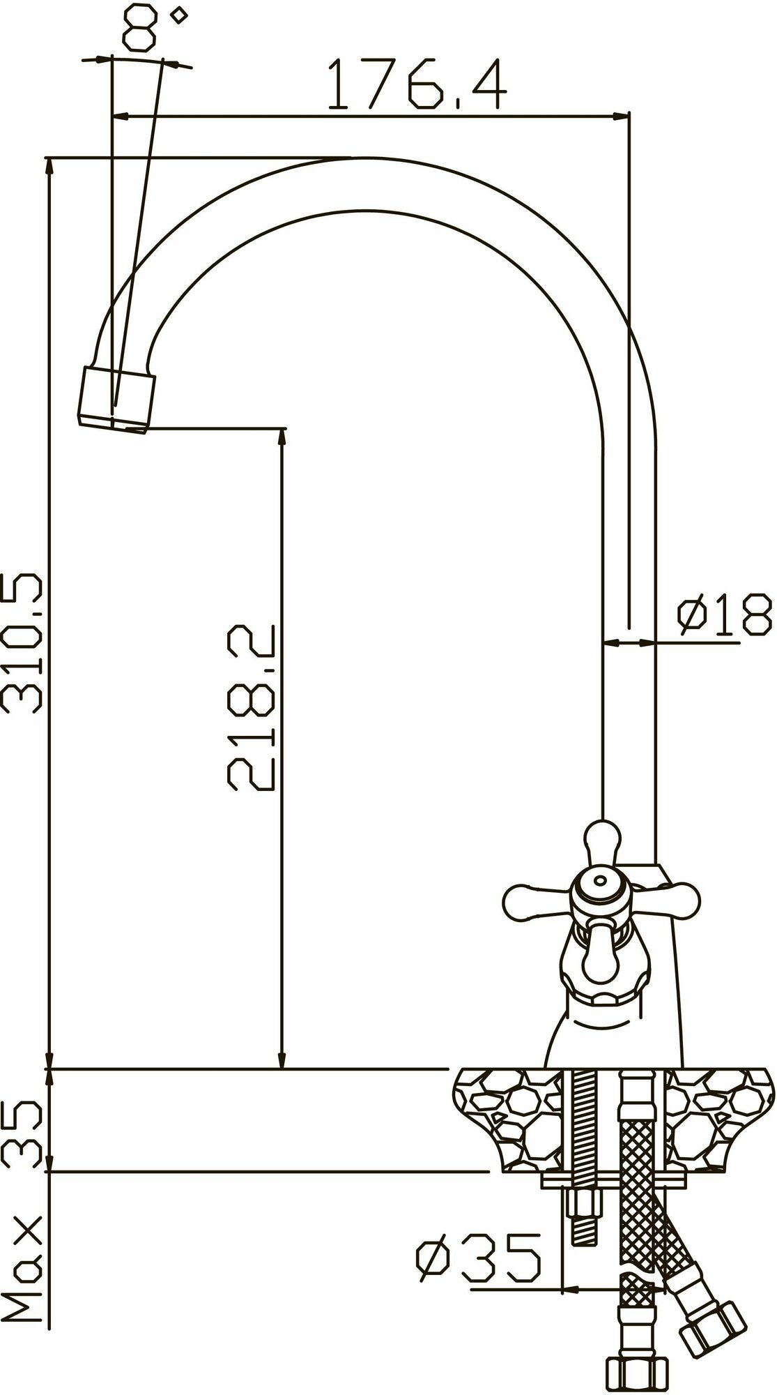 ARGO Смеситель для кухни DOM, J-обр. излив, 1/2 кер. 37992