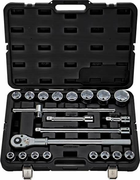| Головки торцевые подробно | 3/4": 19, 21, 22, 23, 24, 26, 27, 29, 30, 32, 35, 36, 38, 41, 46, 50 мм; трещетка 3/4": 24 зуба (500 мм); удлинитель 3/4": 100, 200, 400 мм; удлинитель со скользящим переходником 3/4": 450 мм |