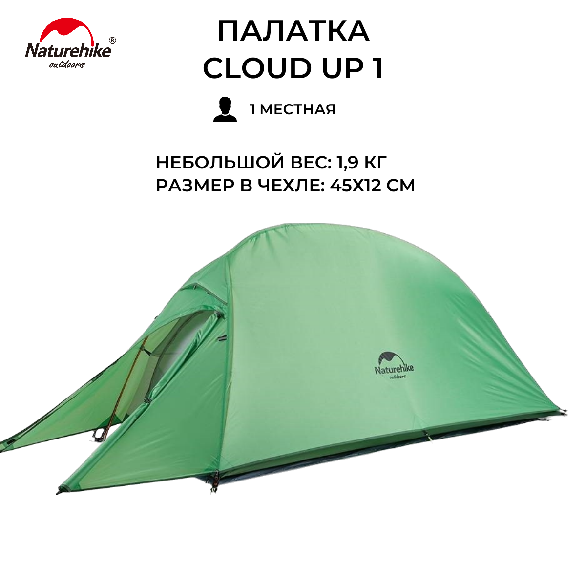 Палатка Naturehike Cloud Up 1-местная, алюминиевый каркас, сверхлегкая, зеленый интересное: