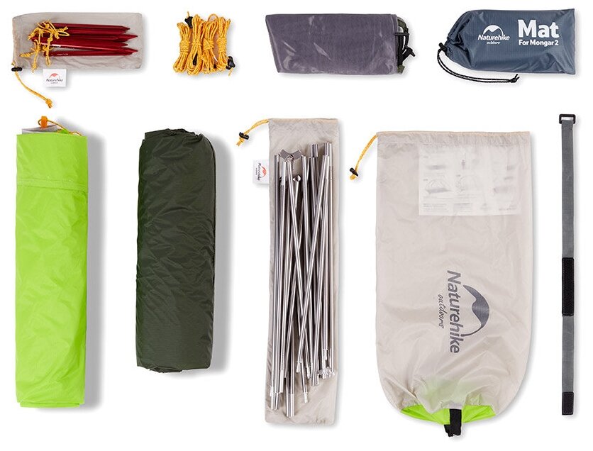 Палатка Naturehike Mongar NH17T007-M 20D,двухместная сверхлегкая, зелено-белая, 6927595726051, 6927595726051