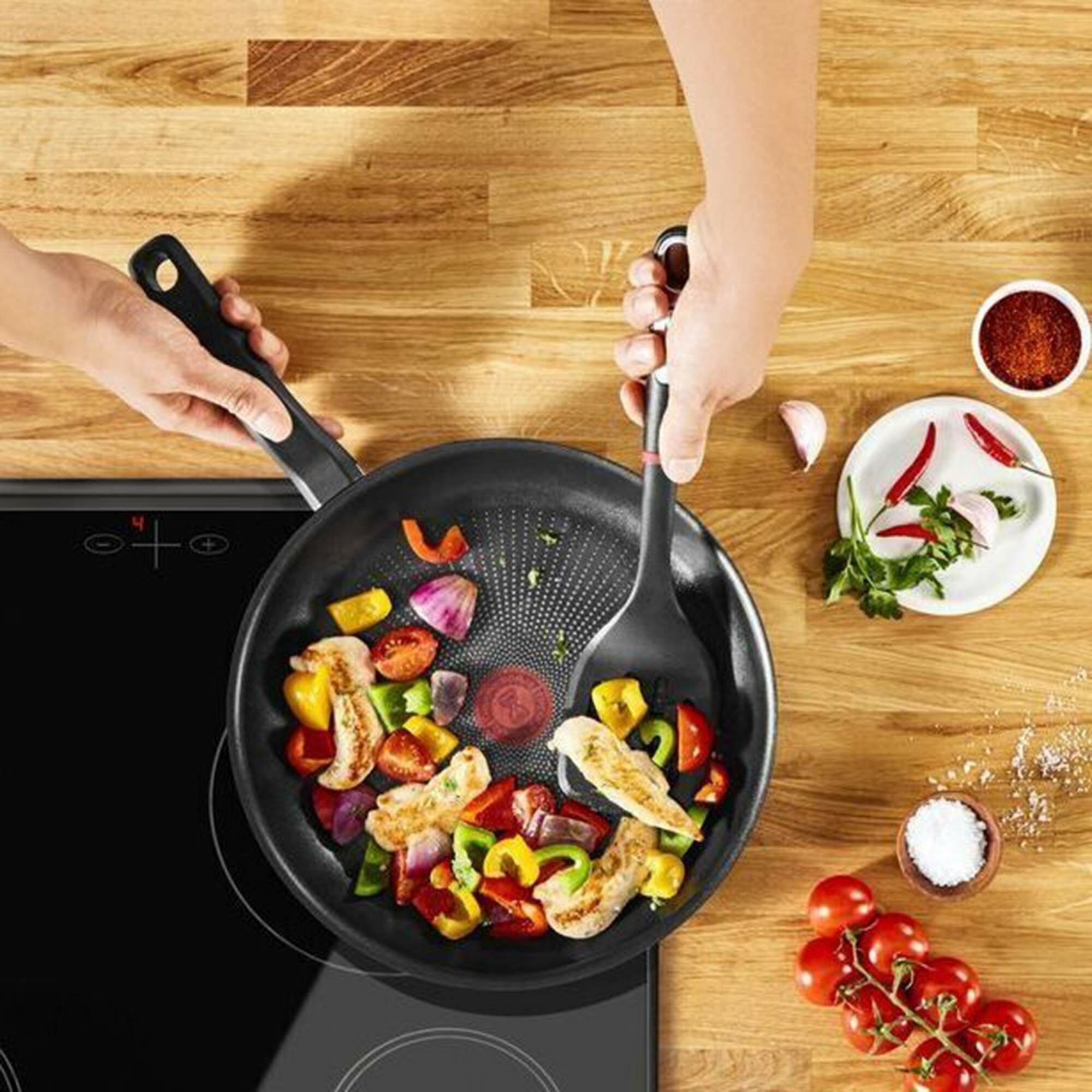 Сковорода Tefal Easy Chef G2700723, диаметр 30 см, с индикатором температуры, с антипригарным покрытием, для газовых, электрических и индукционных плит, сделано во Франции