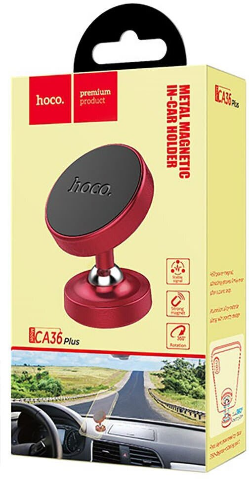 Держатель автомобильный HOCO, CA36 Plus, для смартфона, металл, торпедо, шарнир, магнит, цвет красный(1/210)