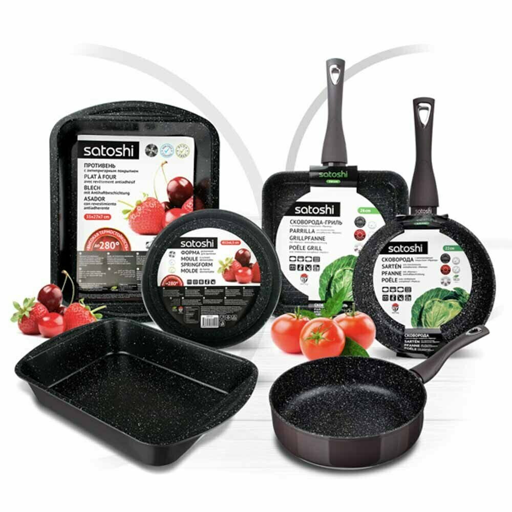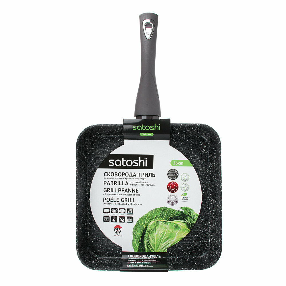 SATOSHI Валькур Сковорода-гриль литая 26х26см, антипригарное покрытие мрамор, индукция интересное: