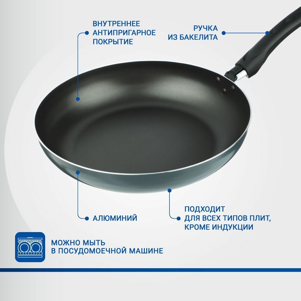 Сковорода с антипригарным покрытием Клио, 28 см, алюминий, без крышки, не индукция