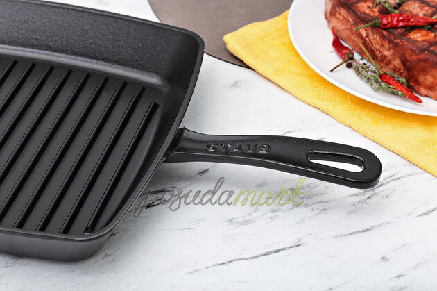 Сковорода-гриль чугунная 26х26 см, цвет черный, Staub, Франция, 12122623 интересное: